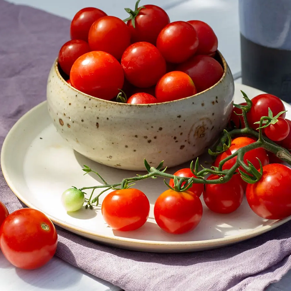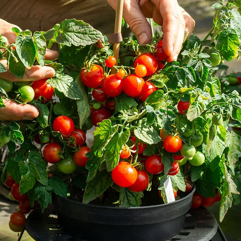 Tiny Tim ist eine niedrig bleibende Buschtomate. Perfekt für die Terrasse und Balkon. Die Pflanze wächst kompakt und erreicht eine Höhe von 50cm.